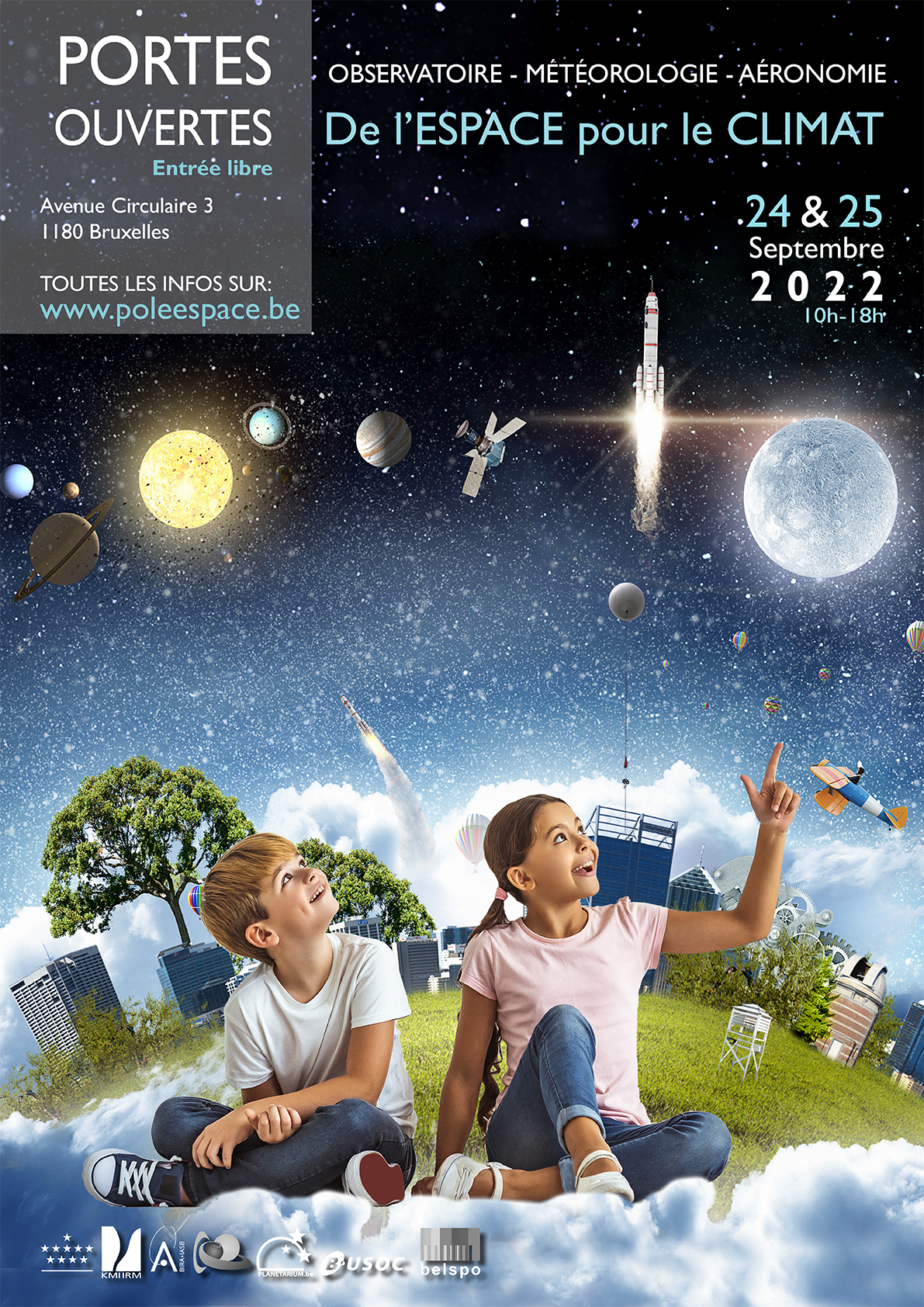 L'Institut Royal Météorologique (IRM), avec l'Observatoire Royal de Belgique (ORB) et l'Institut Royal d'Aéronomie Spatiale de Belgique (IASB) organisent des portes ouvertes les samedi 24 et dimanche 25 septembre 2022, de 10 à 18 heures. Le thème sera "De l'Espace pour le Climat". Entrée gratuite !