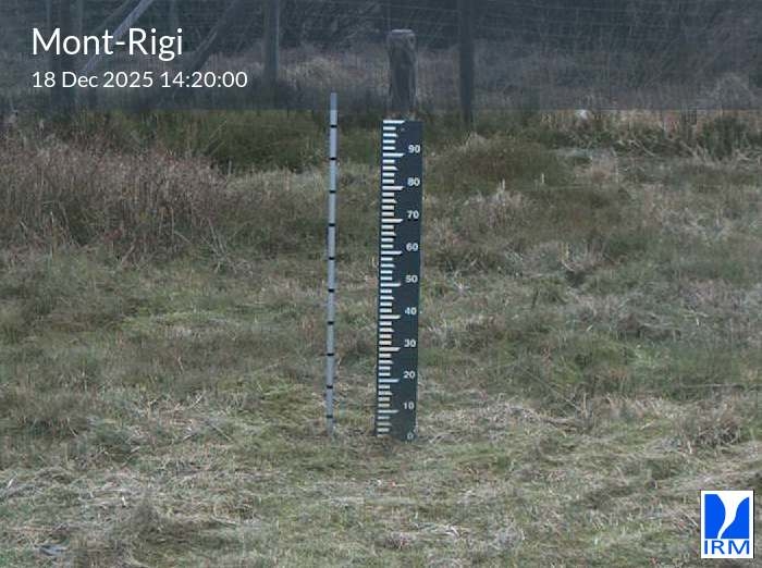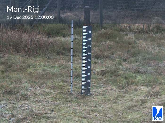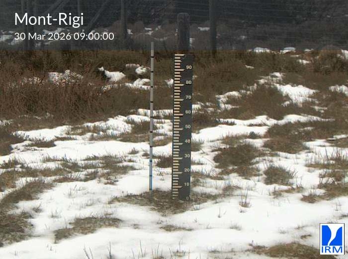 La latte de mesure sur l'image permet d'estimer la hauteur de neige actuelle (en cm).