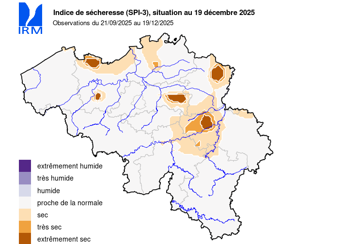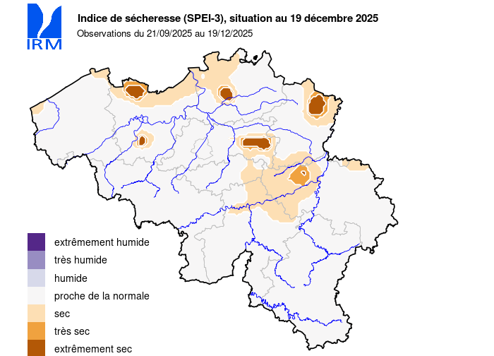 Les graphiques et cartes ci-dessous fournissent un suivi au jour le jour de l'état de sécheresse éventuel dans le pays sur base de 2 indices: