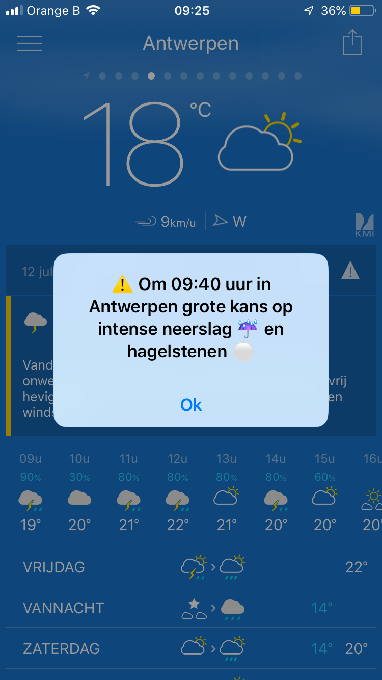 op de hoogte wenst gebracht te worden wanneer een zware bui nadert om bepaalde buitenwerkzaamheden te kunnen onderbreken of gewoon om schikkingen te kunnen treffen.