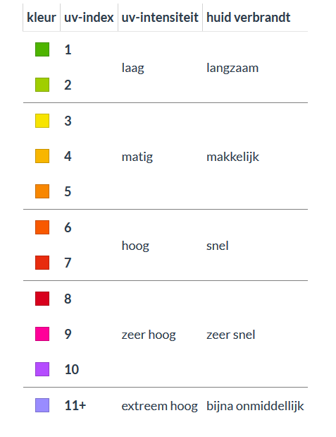 Meer informatie kan je terugvinden via de volgende link: https://www.meteo.be/nl/info/veelgestelde-vragen/hoe-je-beschermen-tegen-gevaarlijk-weer/de-uv-index-verstandig-omgaan-met-de-zon
