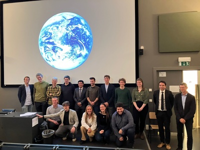 Na een boeiende lezing van dr. Peter Landschützer (onderzoeksdirecteur VLIZ) over de interactie tussen oceanen en klimaat op onze blauwe planeet mochten de 14 afgestudeerden hun certificaat ontvangen. We namen niet alleen afscheid van een generatie studenten maar ook van lesgever dr. Laurent Delobbe werkzaam op het KMI. Na vele jaren enthousiast doceren zullen zijn lessen over radar en neerslagprocessen overgenomen worden door dr. Maarten Reyniers (KMI) en prof. Kwinten Van Weverberg (KMI-UGent).