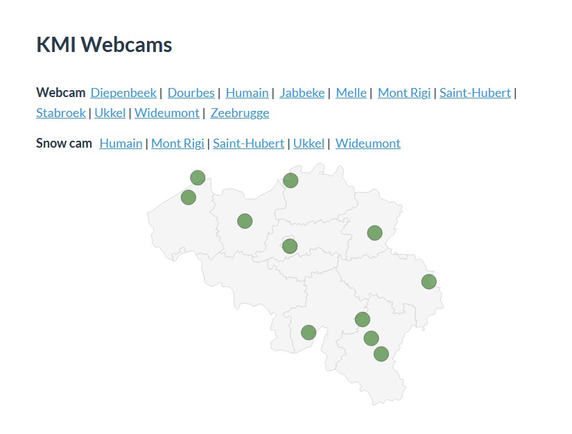 Wilt u de evolutie van de sneeuwlaag van op afstand kunnen volgen? Geen probleem! Het KMI beschikt over een netwerk van 11 weerstations die uitgerust zijn met webcams en snowcams, die onder andere zeer handig zijn om de sneeuwval in het oog te houden.