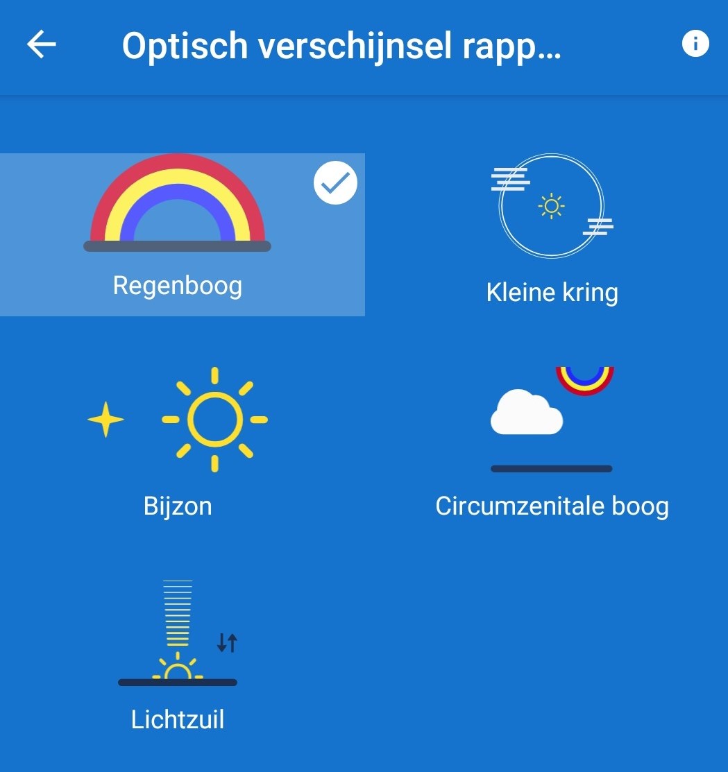 Op 2 april 2020 voegden we twee extra types van waarnemingen toe in de KMI weer-app, namelijk ‘wateroverlast’ en ‘optische verschijnselen’. De historische waarnemingen van optische verschijnselen zijn een fascinerende en interessante meteorologische informatiebron.