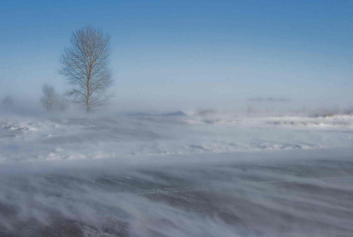 Wanneer het hard waait kan sneeuw zich ophopen op windluwe plaatsen.