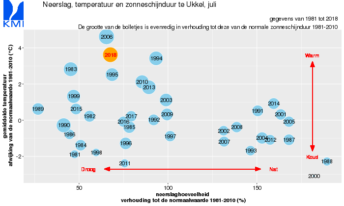 De tabel hieronder geeft de maandelijkse waarden van een reeks parameters weer gemeten te Ukkel (kolom "Maand"), alsook de normale maandelijkse waarden ("Norm".) en de maandelijkse recordwaarden van 1981 tot 2017("Record +" en "Record -") met de respectievelijke jaartallen. De kolom "kar" duidt de statistische karakteristiek aan van de waargenomen maandwaarde ("Maand").