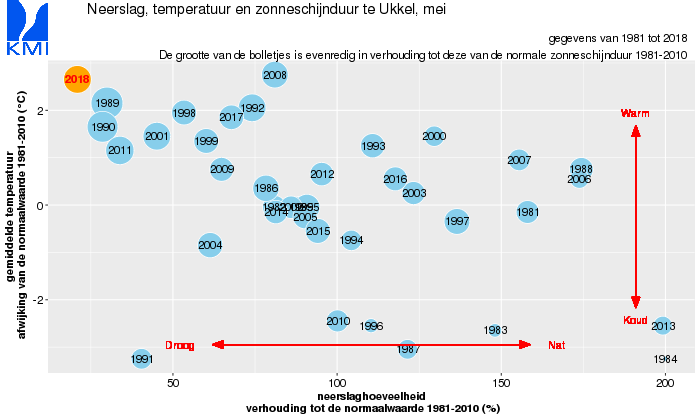 De laatste maand van de meteorologische lente werd in Ukkel gekenmerkt door een uitzonderlijk lage neerslaghoeveelheid, zeer abnormaal hoge gemiddelde temperatuur, zeer abnormaal lage gemiddelde windsnelheid en abnormaal hoge zonneschijnduur.