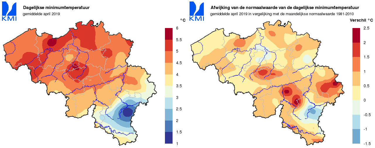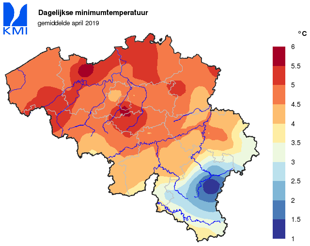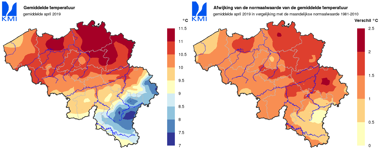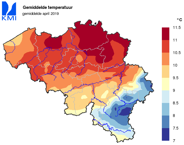 Wanneer we naar de gemiddelde temperatuur kijken over heel de maand, was april hierdoor een iets warmere maand dan gemiddeld (11,0°C, normaal: 9,8°C).