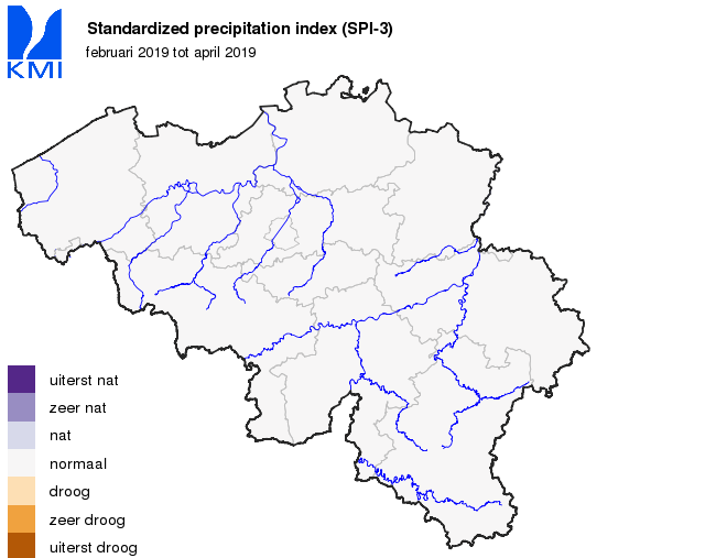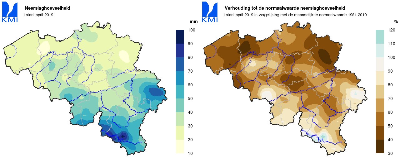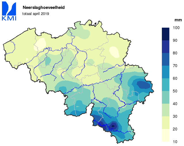 De gemiddelde regionale neerslaghoeveelheden in ons land lagen overal lager dan de normalen. Ze varieerden van ongeveer 50% van de normale in de Kempen tot ongeveer 80% van de normale in Belgisch Lotharingen. Enkel zeer lokaal in de Ardennen en de streek van Gileppe en Warche lagen de neerslaghoeveelheden net boven de normale waarde.