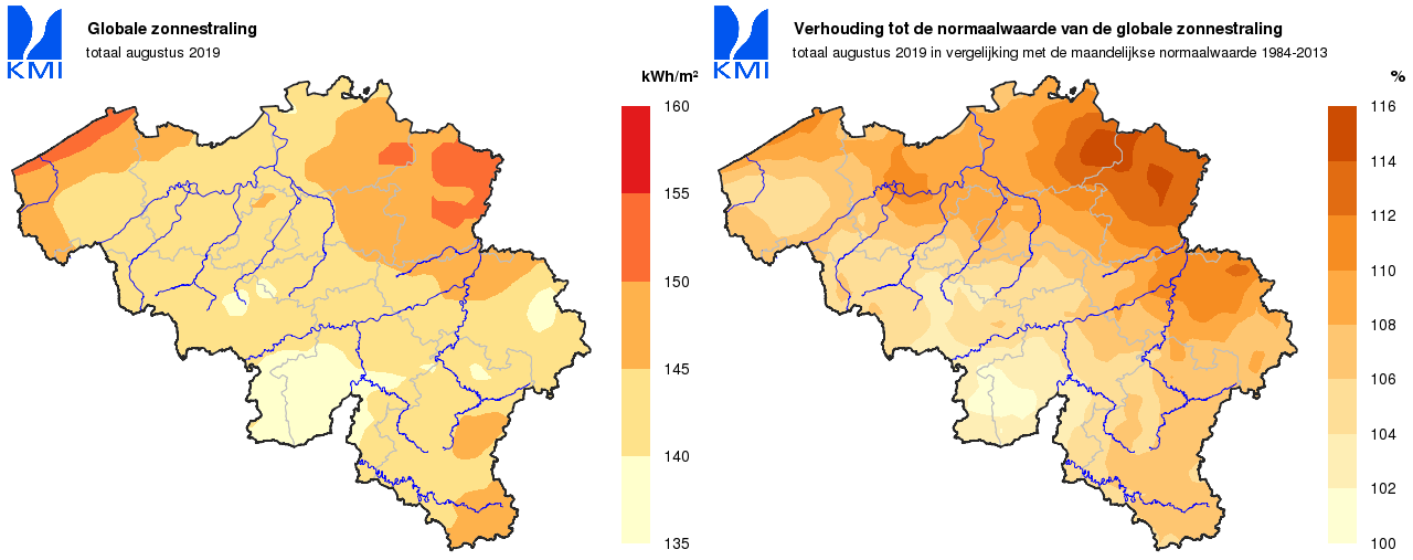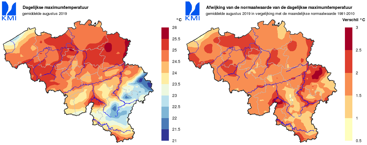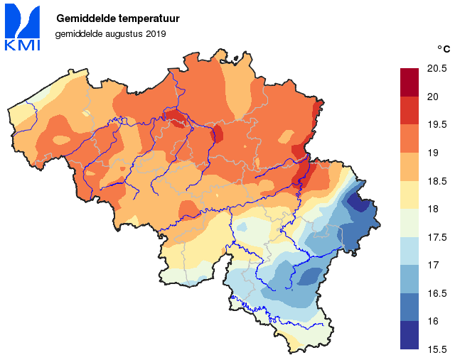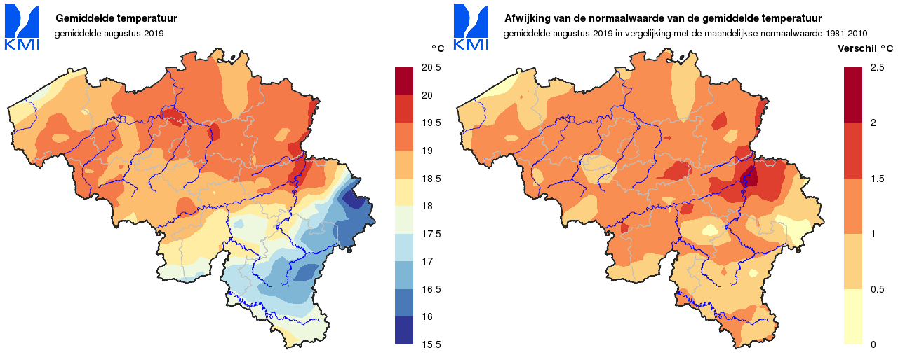 Wanneer we naar de gemiddelde temperatuur over heel de maand kijken, was augustus uiteindelijk iets warmer dan gemiddeld (19,2°C, normaal: 18,0°C).