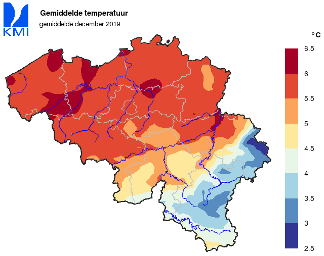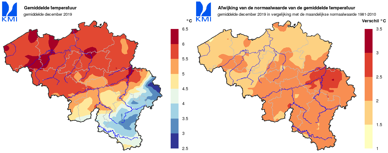 De gemiddelde temperatuur in Ukkel bedroeg 5,9°C (normaal: 3,9°C), goed voor een vijfde plaats in het rijtje van warmste decembermaanden, samen met 2006. Het absolute record dateert uit 2015, met 9,6°C.