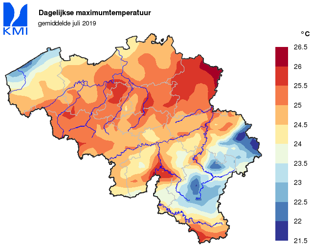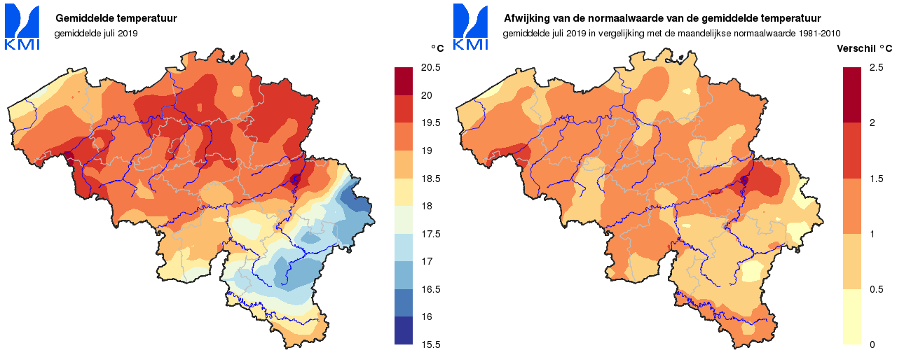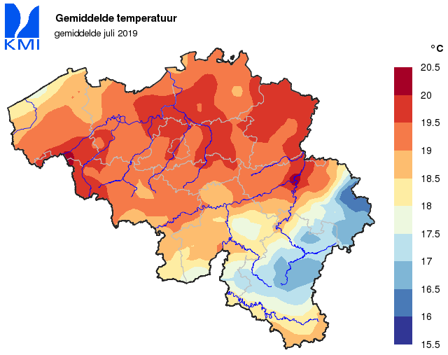 Wanneer we naar de gemiddelde temperatuur over heel de maand kijken, was juli uiteindelijk iets warmer dan gemiddeld (19,5°C, normaal: 18,4°C).