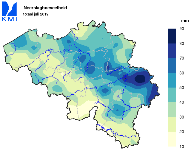 In ons land vielen de grootste neerslaghoeveelheden tijdens de onweders die over ons land trokken. In Gorsem (Sint-Truiden) werd de grootste hoeveelheid geregistreerd. Op de 27ste viel er daar 58,2 mm neerslag.