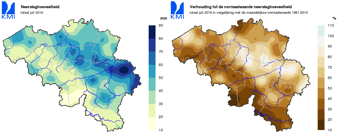 De gemiddelde regionale neerslaghoeveelheden in ons land lagen overal onder de normalen, soms zelfs zeer ruim. Ze varieerden van ongeveer 30% van de normale in Belgisch Lotharingen en in de streek tussen Samber en Maas tot ongeveer 80% van de normale in het Land van Herve.