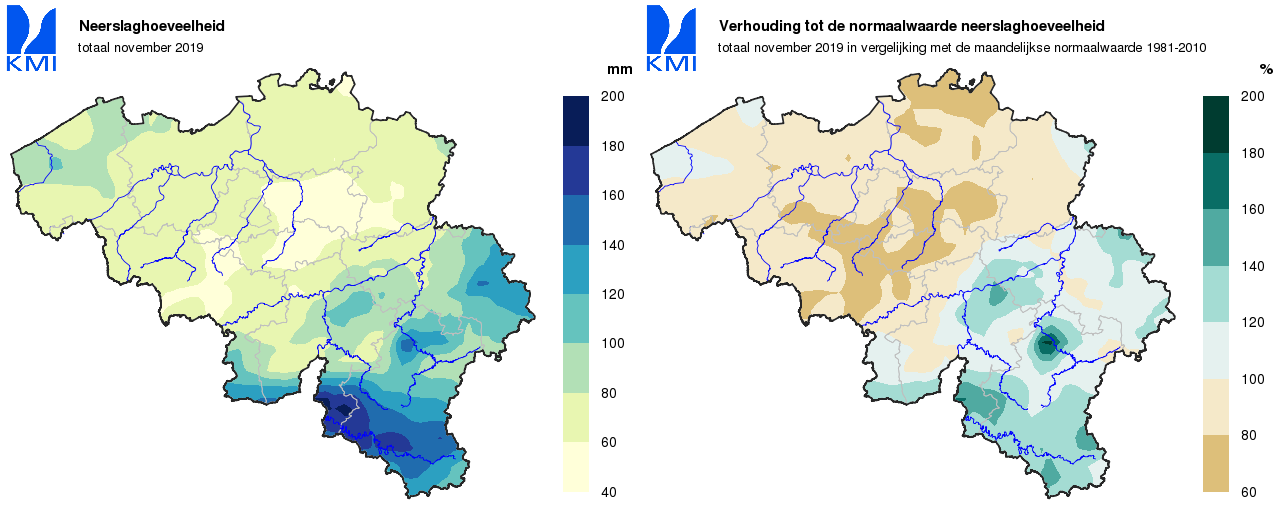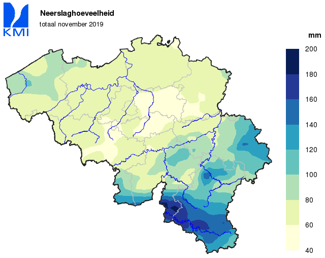 De gemiddelde regionale neerslaghoeveelheden in ons land lagen rond de normalen. Ze varieerden van ongeveer 80% van de normale aan de kust en in de Polders tot ongeveer 125% van de normale in de Ardennen en in Belgisch Lotharingen. Alle waarden zijn normaal.