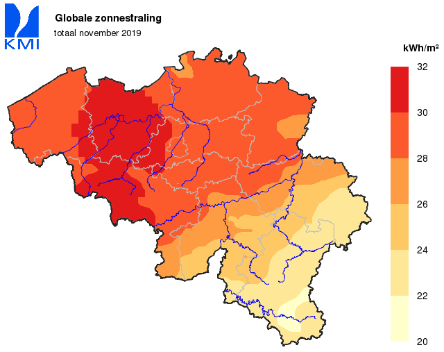 In totaal registreerden we 79u 53min zon in Ukkel (normaal: 66u 17min).