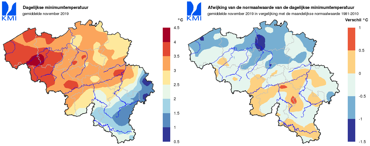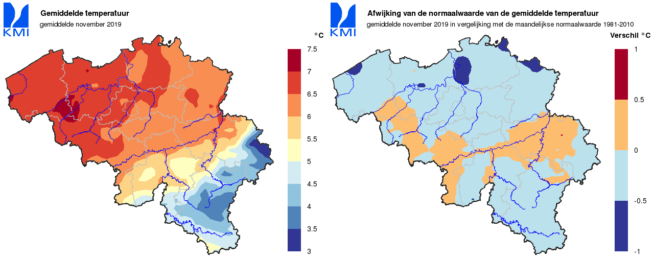 November begon en eindigde (behalve op de 30ste) warmer dan gemiddeld. Desondanks lagen de temperaturen het grootste deel van de maand – van de 7de tot en met de 21ste – onder de normale waarden in Ukkel. De 16de daalde de temperatuur een eerste keer onder het vriespunt. Dit zorgde uiteindelijk voor iets lagere gemiddelde temperaturen dan normaal.
