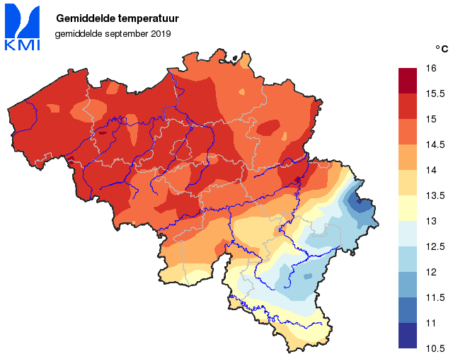 De gemiddelde temperatuur in Ukkel bedroeg 15,2°C (normaal: 14,9°C).