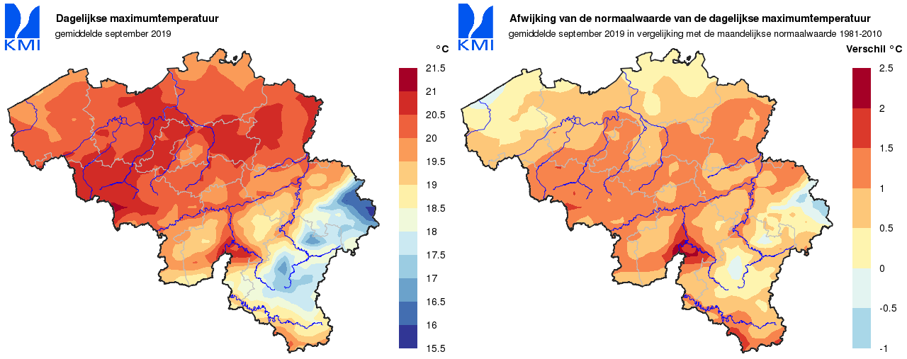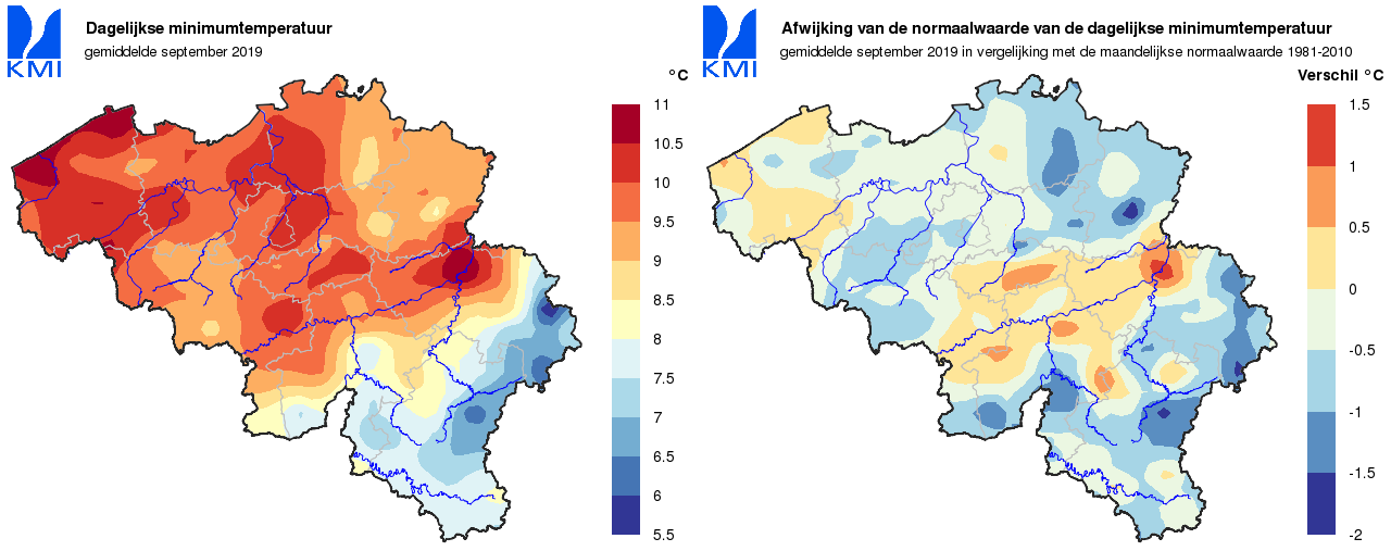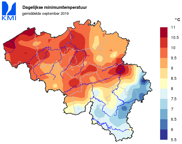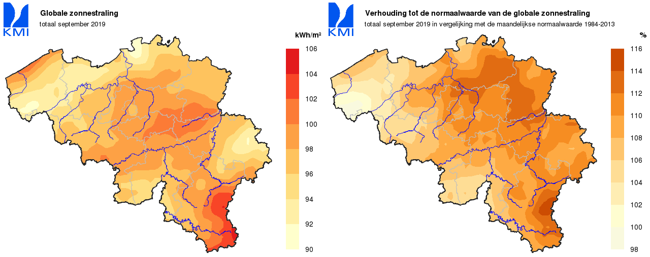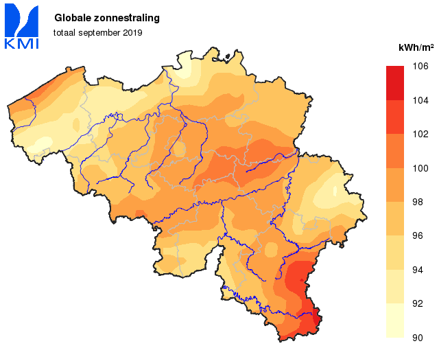 In Ukkel viel er 62,6 mm neerslag (norm.: 68,9 mm) op 15 dagen (norm.: 15,7 dagen). Het overgrote deel van dit totaal viel tijdens de laatste dagen van de maand: 50,7 mm vanaf de 21ste. In 2004 viel er net iets meer neerslag tijdens de derde decade (21-30 september): 51,0 mm. Daarvoor moeten we al teruggaan tot 1974 om een nattere laatste decade van september tegen te komen. Toen viel er 72,3 mm (meteen ook het record vanaf 1901).