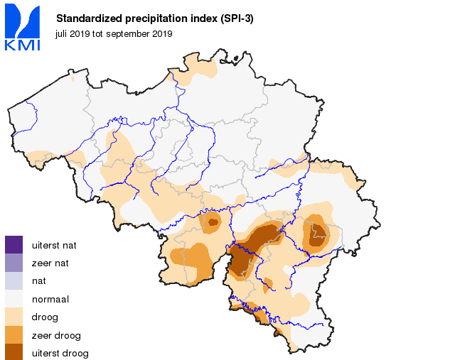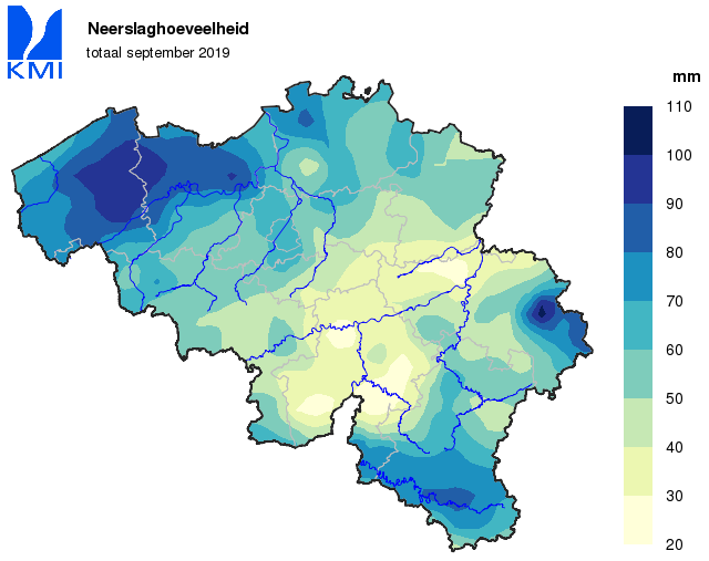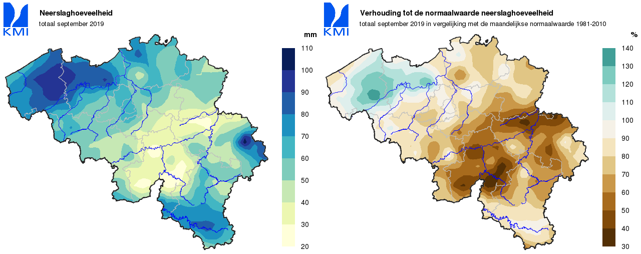 De gemiddelde regionale neerslaghoeveelheden in ons land lagen bijna overal onder de normalen. Ze varieerden van ongeveer 45% van de normale in het Land van Herve tot ongeveer 105% van de normale in Vlaanderen.