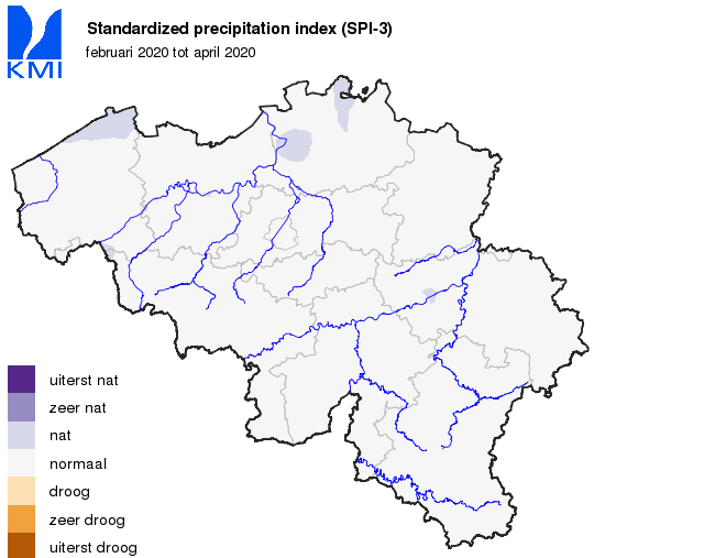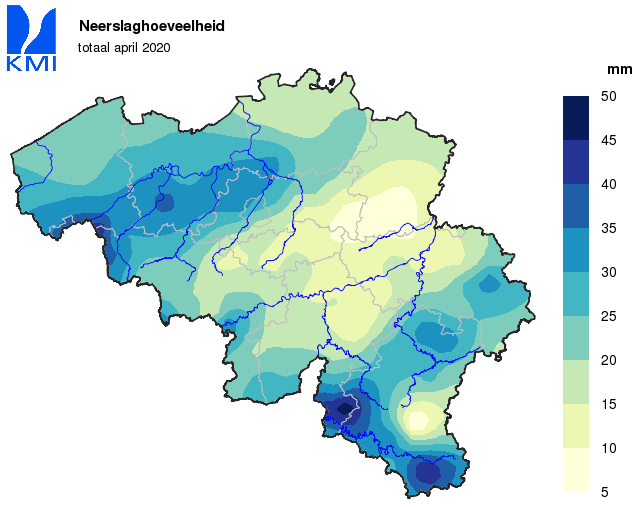 De gemiddelde regionale neerslaghoeveelheden in ons land lagen overal ver onder de normalen. Ze varieerden van ongeveer 20% van de normale in Haspengouw tot ongeveer 60% van de normale in Vlaanderen.