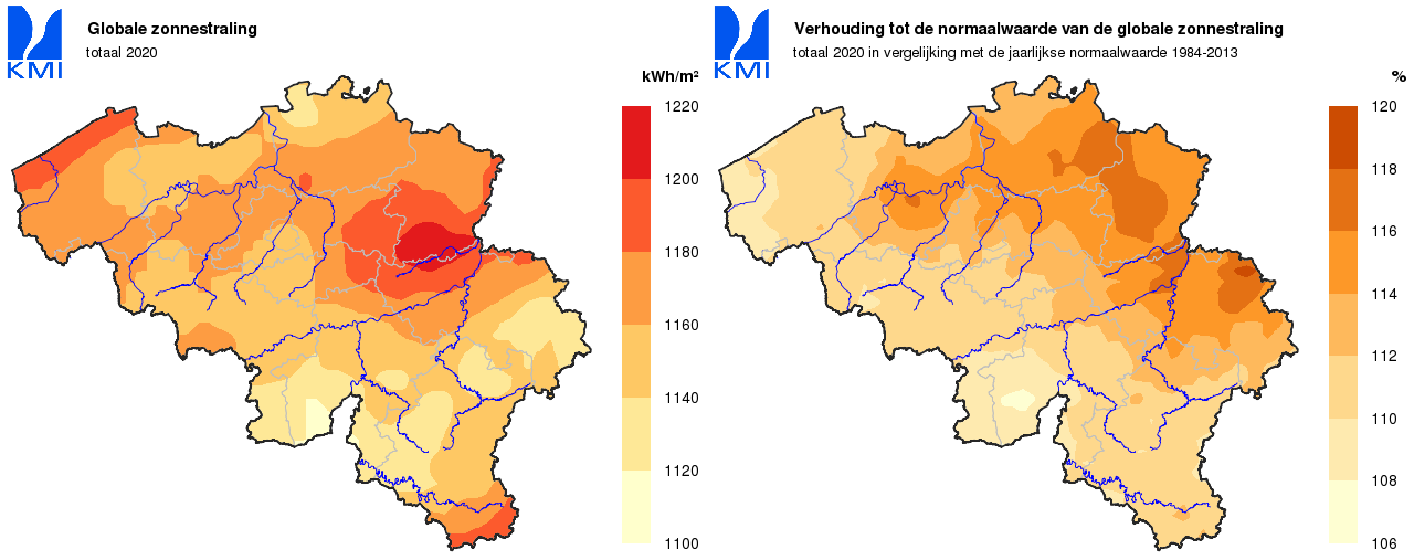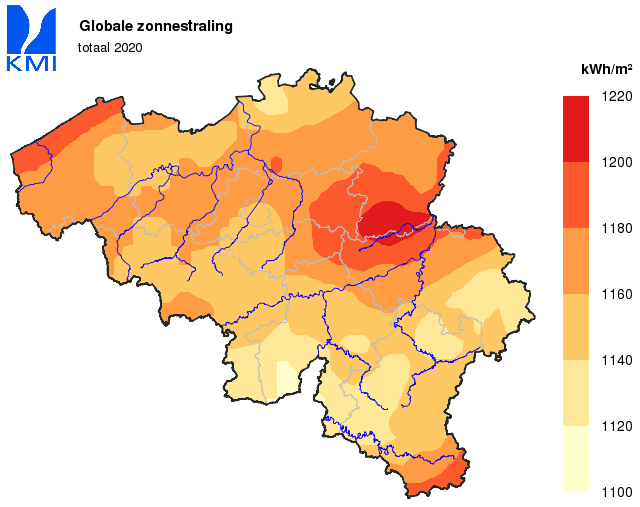 | Globale zonnestraling | kWh/m² | 1138.2 | 996.8 | ++ | 1172.7 | 2018 | 890.6 | 1981 |