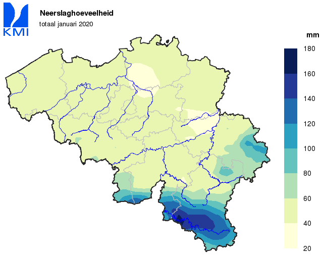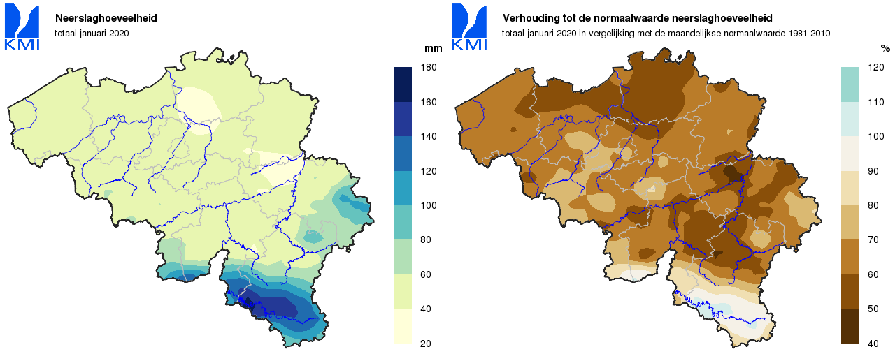 De gemiddelde regionale neerslaghoeveelheden in ons land lagen overal onder de normalen. Ze varieerden van ongeveer 60% van de normale in de Condroz tot ongeveer 90% van de normale in Belgisch Lotharingen.