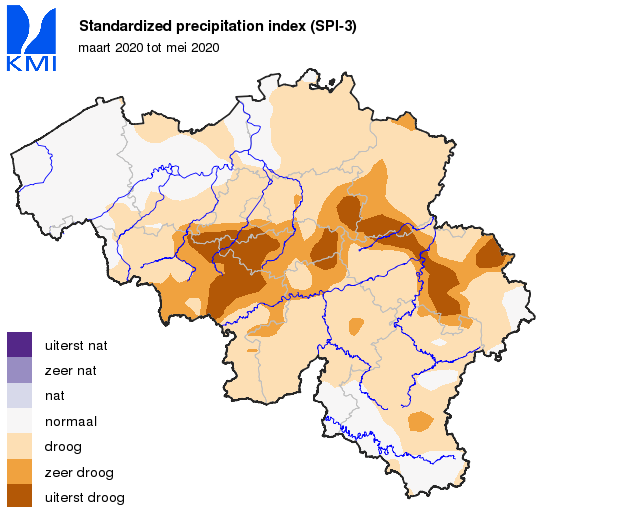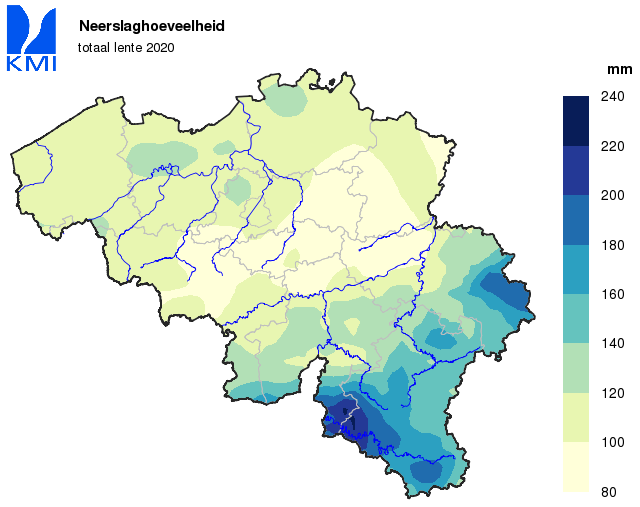 De gemiddelde regionale neerslaghoeveelheden in ons land lagen overal onder de normale waarden en varieerden van ongeveer 50% van de normale in Haspengouw tot ongeveer 70% van de normale in Vlaanderen en in Belgisch Lotharingen.