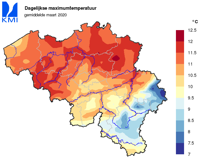 De gemiddelde temperatuur in Ukkel bedroeg, net als in februari, 7,1°C (normaal: 6,8°C).