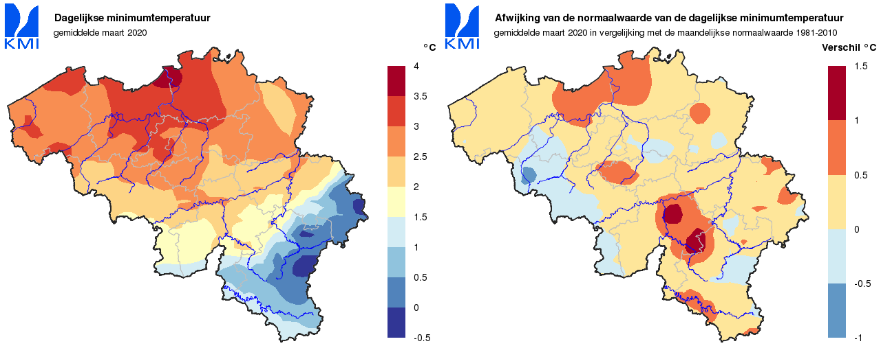 In de rest ons land werd de hoogste temperatuur op de 18de gemeten. In Korbeek-Lo (Bierbeek) steeg de temperatuur toen tot 19,0°C: Deze eerste lentemaand viel er geen lentedag te bespeuren.
