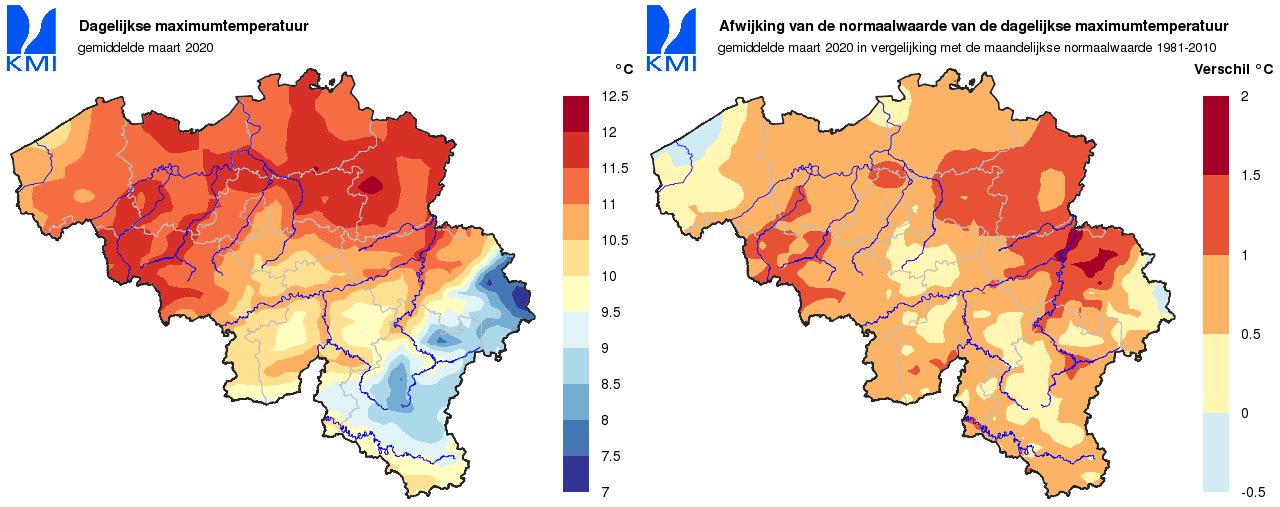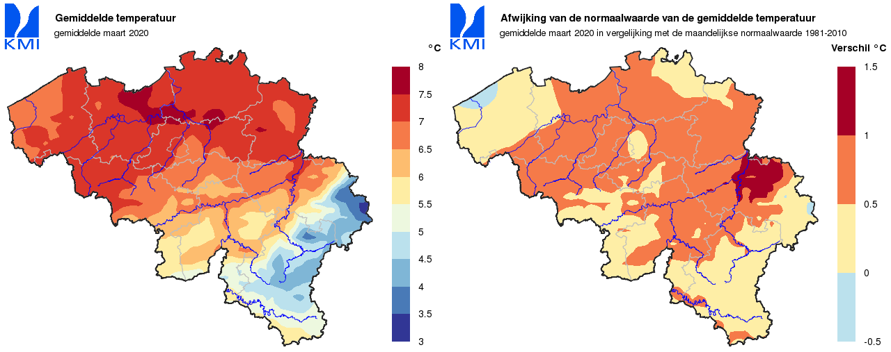 Door deze temperatuurverschillen tussen het begin en het einde van de maand, lagen de gemiddelde temperaturen van maart uiteindelijk zeer dicht bij hun respectievelijke normalen.