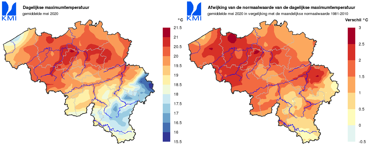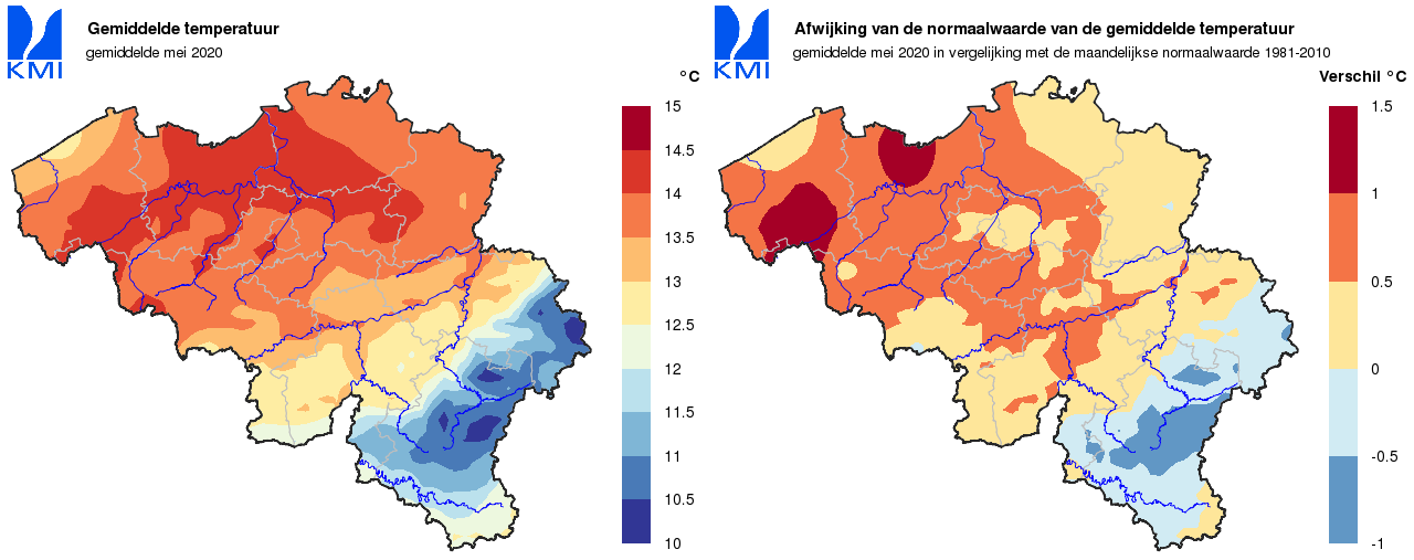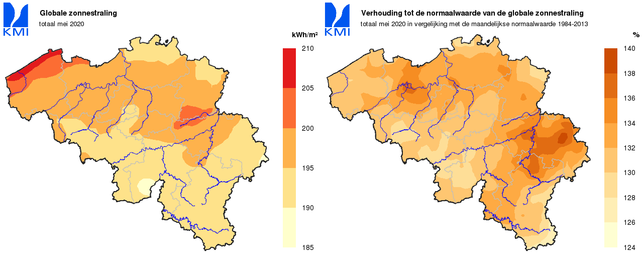 Deze lage hoeveelheid is een nieuw record voor de huidige referentieperiode. Het vorige record heeft niet lang stand gehouden: 13,9 mm in 2018. Wanneer we naar de volledige periode vanaf 1833 kijken, was enkel de eerste meimaand van deze reeks nog droger. In mei 1833 viel er slechts 1,4 mm neerslag. Meer informatie over de aanhoudende droogte staat op onze website (droogte_2020).