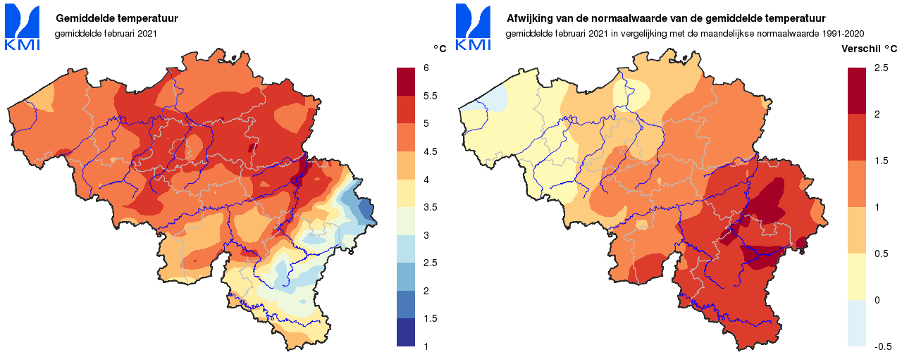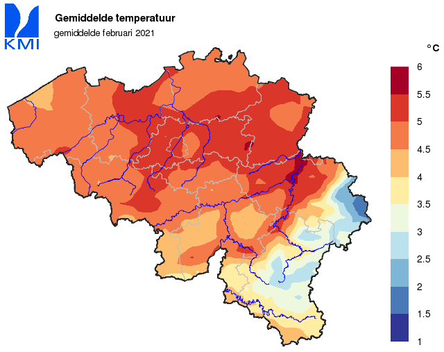 De gemiddelde temperatuur over heel de maand was uiteindelijk hoger dan gemiddeld en bedroeg 5,3°C (normaal: 4,2°C).
