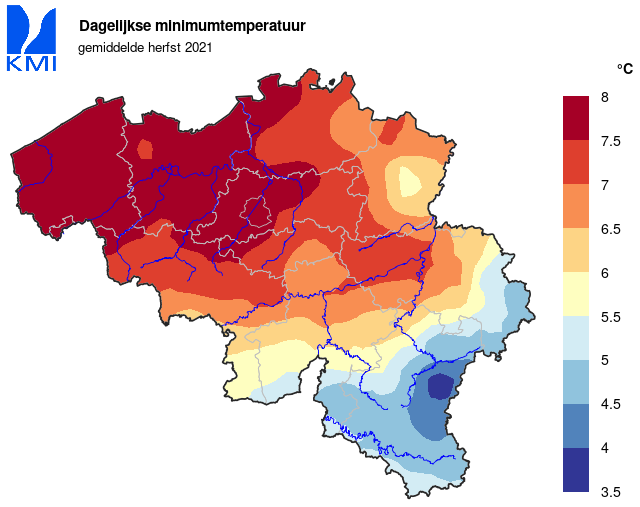 In ons land werd de hoogste temperatuur ook op 8 september gemeten (29,9°C in zulzeke(Kluisbergen)) en de laagste op 23 november (-5,4°C in Givry (Bertogne)).