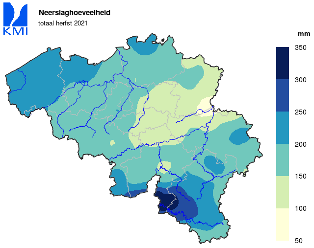 Uiteindelijke viel er afgelopen herfst minder neerslag dan gemiddeld: 180,6 mm neerslag (normaal: 209,3 mm).