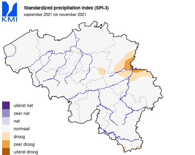 De gemiddelde regionale neerslaghoeveelheden in ons land lagen overal onder de normale waarden en varieerden van ongeveer 55% van de normale in het Land van Herve tot ongeveer 95% van de normale in Vlaanderen.