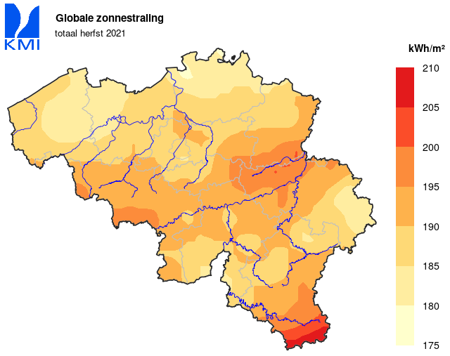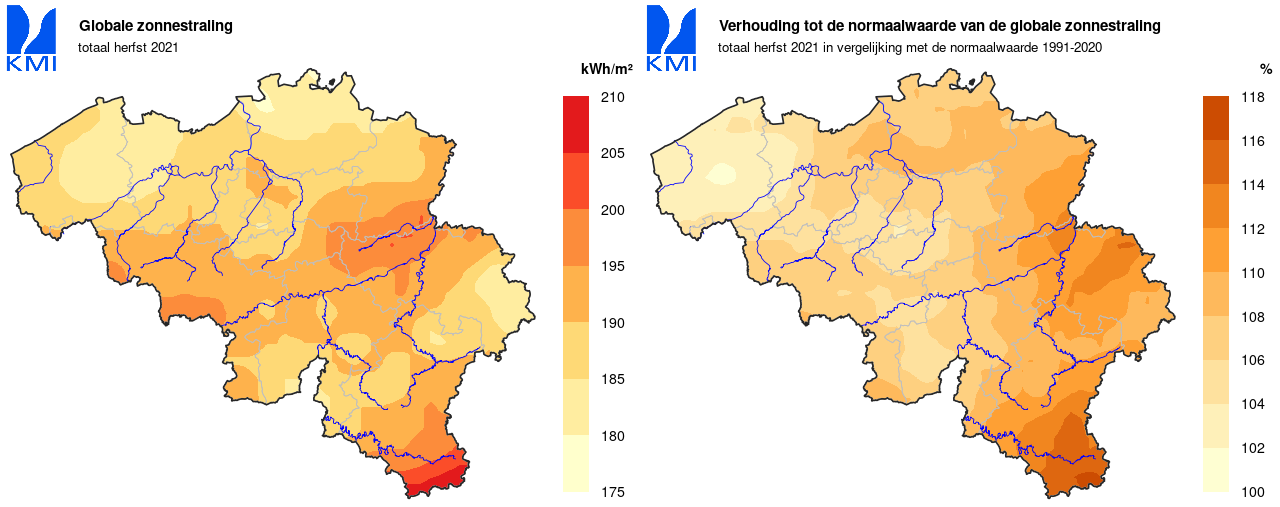 Dankzij de zeer zonnige maand september was de herfst in zijn totaal zonniger dan gemiddeld. De zon scheen uiteindelijk 362u 25min in Ukkel (normaal: 332u 52min).