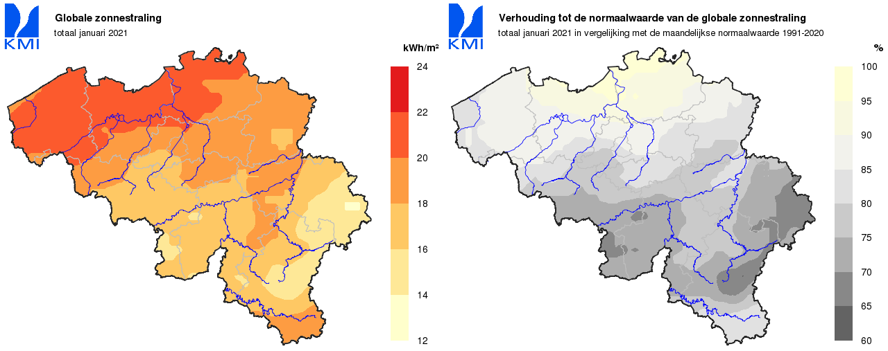 De afgelopen maand begon somber en lange tijd zag het ernaar uit dat we het record van 2018 (26u 59min) zouden verbreken. Naar het einde van de maand toe volgden er echter enkele net iets zonnigere dagen waardoor we in Ukkel in totaal 27u 17min zon registreerden (normaal: 59u 04min). Daarmee werd deze januarimaand de tweede somberste.