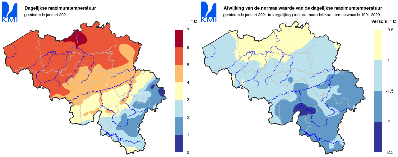 Opmerking vooraf: vanaf deze maand januari 2021 is de nieuwe referentieperiode voor de berekening van de normalen de periode 1991-2020.
