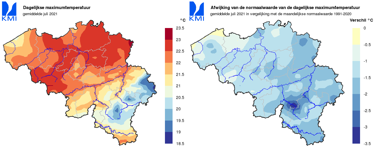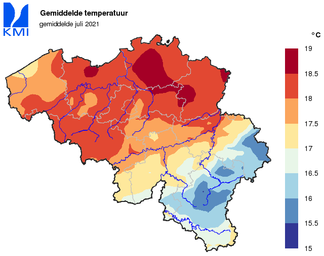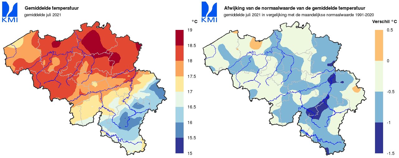 Met deze temperaturen is het niet verwonderlijk dat de gemiddelde temperatuur in Ukkel onder de normale waarde lag: 17,9°C (normaal: 18,7°C). Enkel de gemiddelde minimumtemperatuur lag net boven de normale waarde (14,3°C tegenover een normale van 14,1°C).