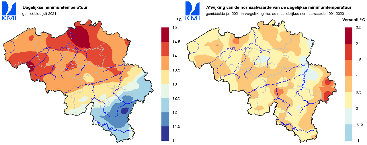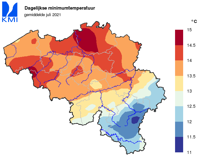 In Ukkel varieerden de temperaturen tussen 11,4°C (1 juli) en 26,5°C (18 juli). Toch 2 opmerkelijke waarden: