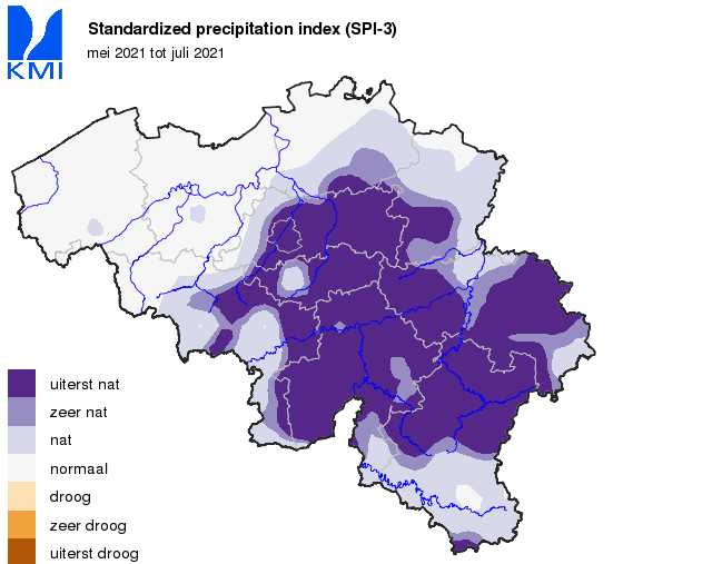 Deze grote neerslaghoeveelheden zorgden voor heel veel wateroverlast met helaas een zeer zware menselijke tol van een veertigtal doden. Vooral de provincies Luik, Namen en Luxemburg werden zeer zwaar getroffen en enkel het westen van ons land ontsnapte hieraan. Meer uitleg hierover kunt u terugvinden via de volgende link: eerste-cijfers-en-duiding-bij-de-hevige-neerslag-van-14-en-15-juli.