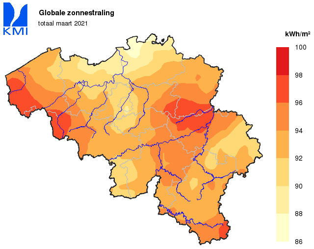 | Globale zonnestraling | kWh/m² | 89.1 | 76.5 | 99.7 | 2003 | 53.4 | 2001 | |