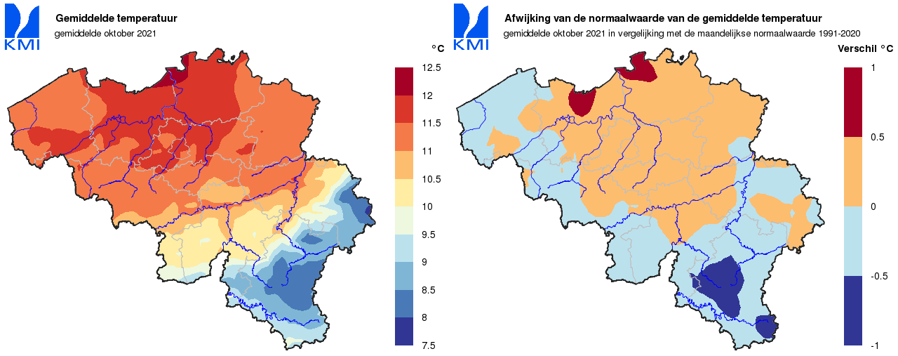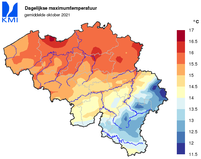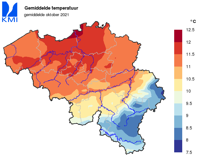 De uiteindelijke gemiddelde temperatuur lag in Ukkel net boven de normale waarde: 11,5°C (normaal: 11,3°C).