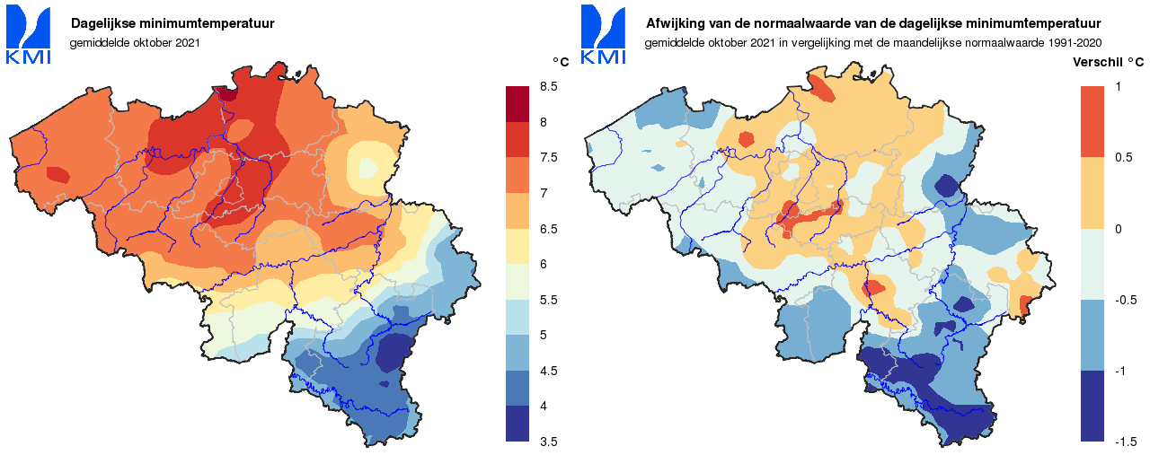 In ons land werd de hoogste temperatuur op de 19de gemeten. In Poperinge steeg de temperatuur tot 21,5°C. De vorst deed zijn intrede in ons land en de laagste temperatuur van -2,4°C werd op de 25ste in Sankt-Vith en op de 26ste in Givry (Bertogne) geregistreerd.