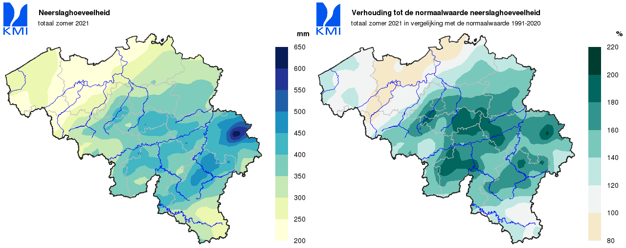 De gemiddelde regionale neerslaghoeveelheden in ons land lagen overal boven de normale waarden en varieerden van ongeveer 105% van de normale in de Polders tot ongeveer 175% van de normale in Haspengouw.