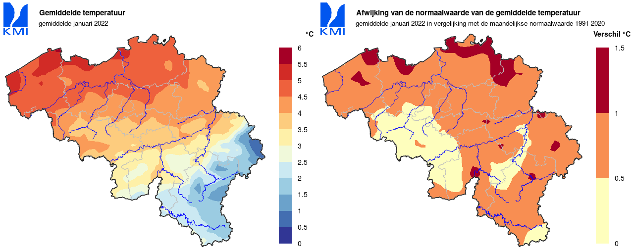De uiteindelijke gemiddelde temperatuur lag in Ukkel boven de normale waarde: 4,3°C (normaal: 3,7°C).