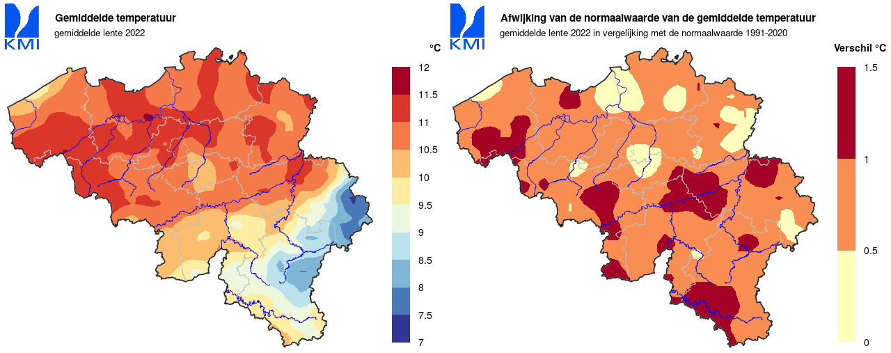 In Ukkel was april kouder dan gemiddeld terwijl maart en mei warmer waren. De lente in zijn geheel was ook warmer dan gemiddeld: 11,3 °C (normaal: 10,5°C).