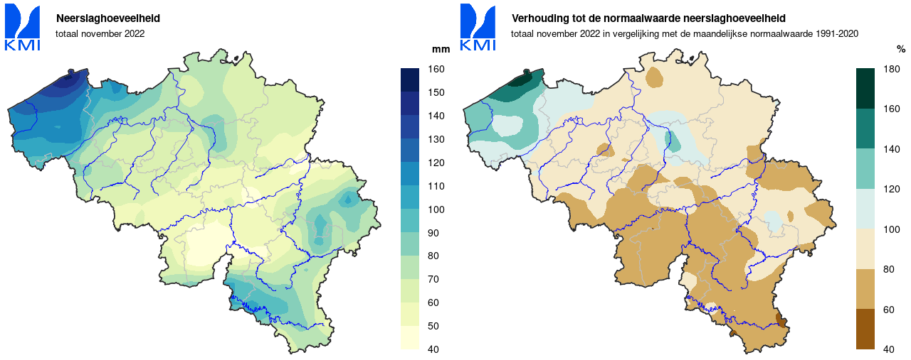 Het grootste dagtotaal werd op 18 november in Herent gemeten (40,4 mm).
