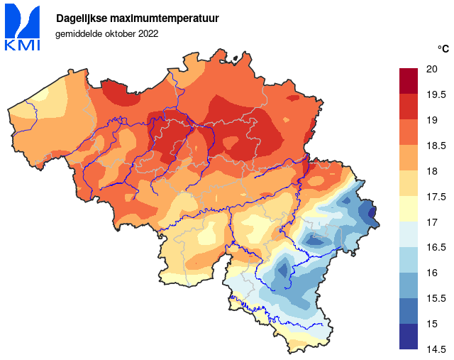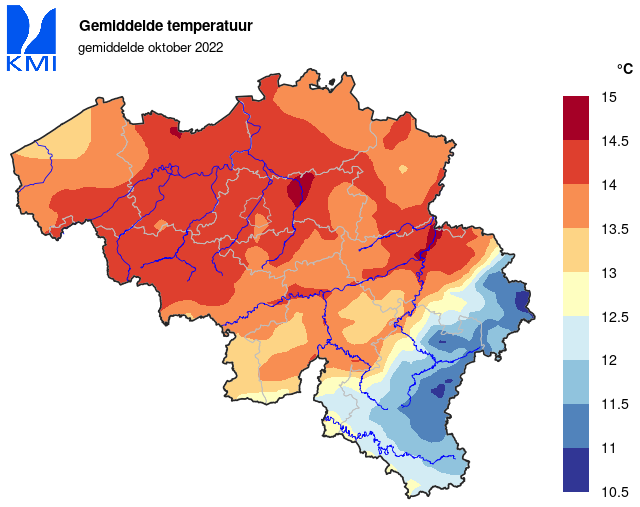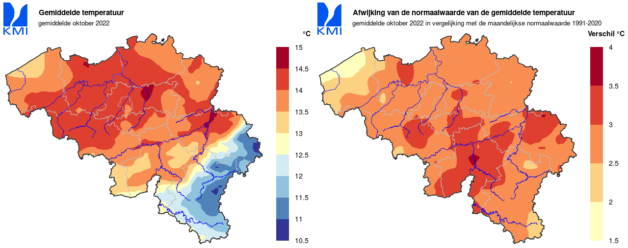In ons land werd de laagste minimumtemperatuur op 12 oktober in Elsenborn (Bütgenbach) gemeten met -3,6°C. De hoogste temperatuur werd in Dilbeek en Meeuwen (Oudsbergen) geregistreerd en bedroeg 25,6°C (29 oktober).